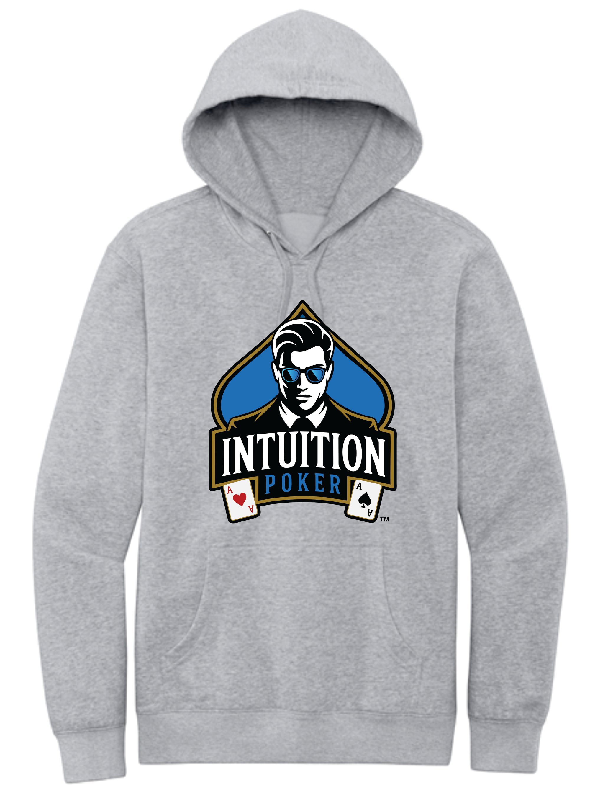 Super Nice and soft premium Hoodie with the bright Intuition Poker logo printed on the center front. Available in adult sizes Small thru 4XL.