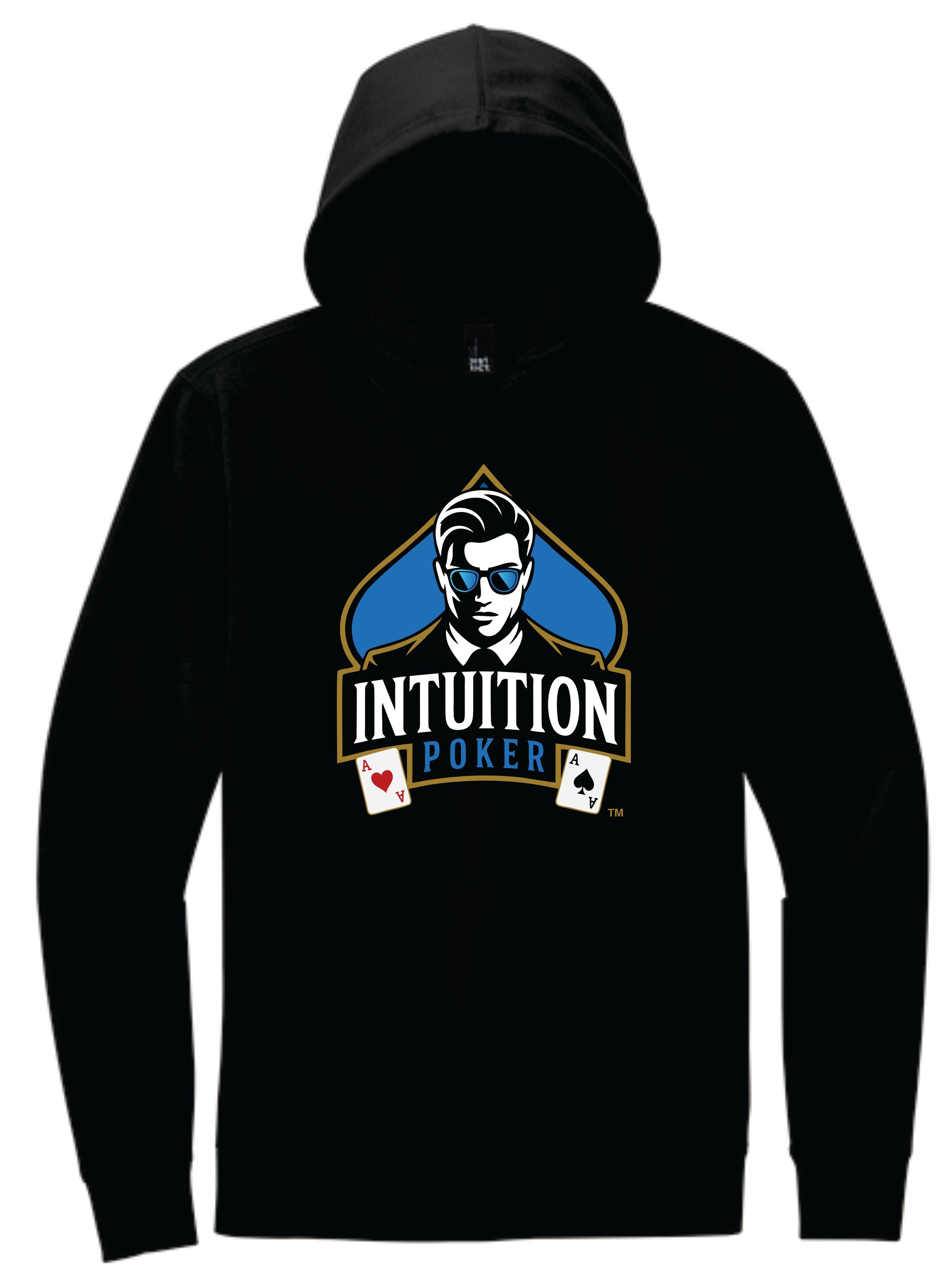 Super Nice and soft premium Hoodie with the bright Intuition Poker logo printed on the center front. Available in adult sizes Small thru 4XL.